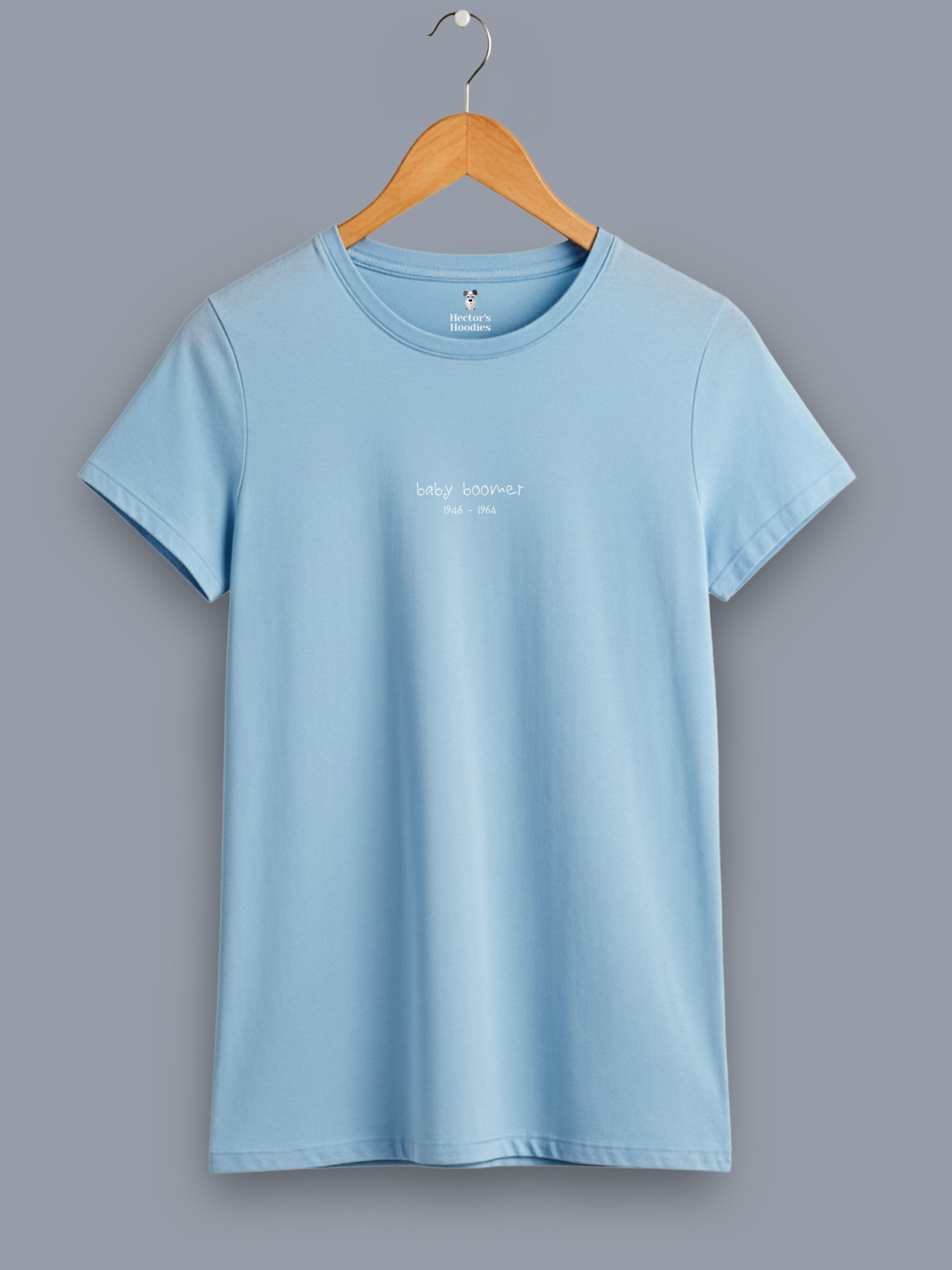 'baby boomer' woman's classic fit t-shirt - Stop the confusion of knowing which generational cohort you might be. Sling it on your t-shirt!  We define generations because when you are born affects your attitudes, your perceptions, your values and your behaviours. Baby boomers started in 1946 with a post-war boom in births. Ending 1964, as the birthrate began to tail off.  Boomers are said to be committed, self-sufficient and competitive (probably due to there being so many of them!).